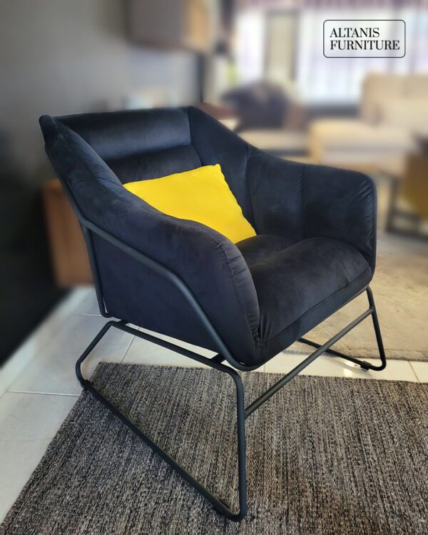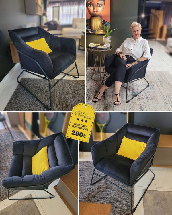 Mε μαύρο βελουτέ ύφασμα και μεταλλικά πόδια με ηλεκτροστατική βαφή.